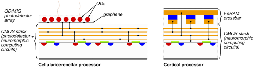 The science-to-technology breakthrough is the heterogeneous integration of a neuromorphic computing scheme featuring three different abstraction levels (cellular, cerebellar, and cortical processors) with high-density memory arrays and adaptive photodetector technology for fast and energy efficient operation. MISEL employs a holistic approach where everything from devices to use case is adopted to serve as a whole. This allows context-aware, low power and distributed computation on an edge device, challenging the current mainstream approach relying on massive-data transfers and centralized computational resources. The objective is a compact, brain-mimicking, low-power system exploiting a wide range of biological principles: human eye like adaptivity with cellular processor, as well as data fusion, learning and reasoning performed by cerebellar processor (reflexes) and cortical processor (conscious decisions). Finally, by demonstrating and evaluating the system operation in challenging tasks (end-to-end use scenarios), the project targets outperforming conventional state of the art systems.